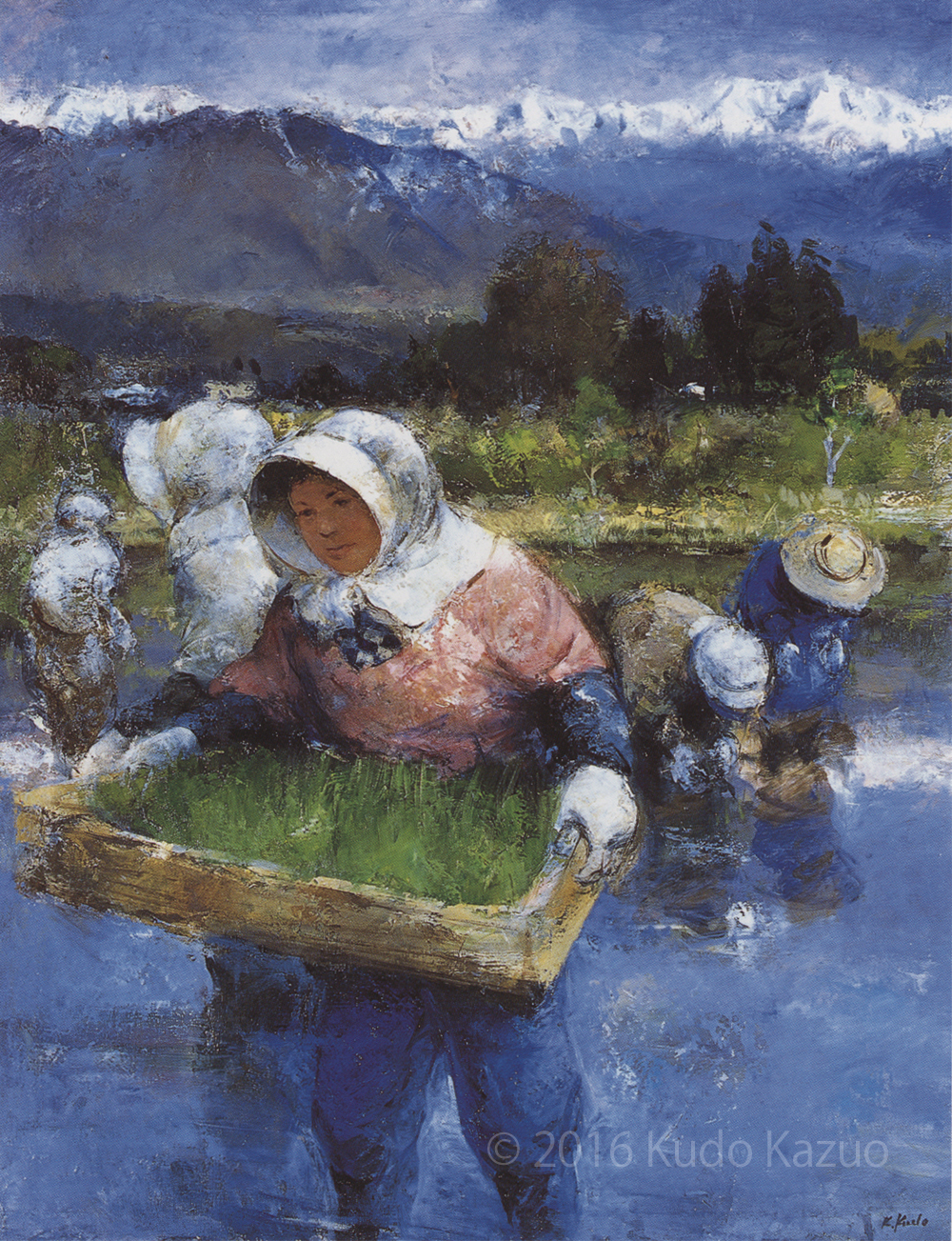 北アルプスと農婦F50号 1984年 田中明氏所蔵
